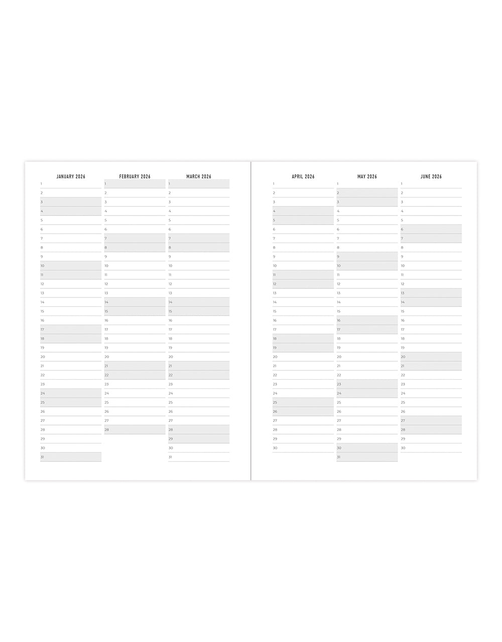 Designed for those who value focus and simplicity, Titanium Diaries are perfect for cutting through distractions and getting straight down to business. In sleek Charcoal and Silver tones; with a metallic matt paper cover, these diaries exude a minimalistic, modern vibe, almost evoking a futuristic, space-inspired look. Stay organised and on track with this stylish, no-nonsense planning companion. Day to a page with appointments diary layout.