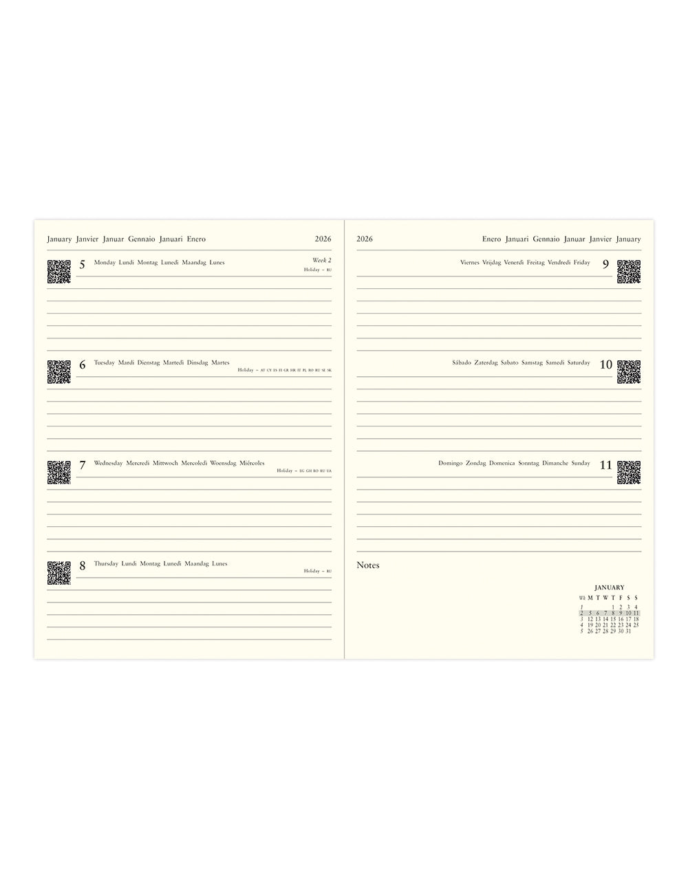 Baroque A5 Week to View Diary 2026 - Multilanguage