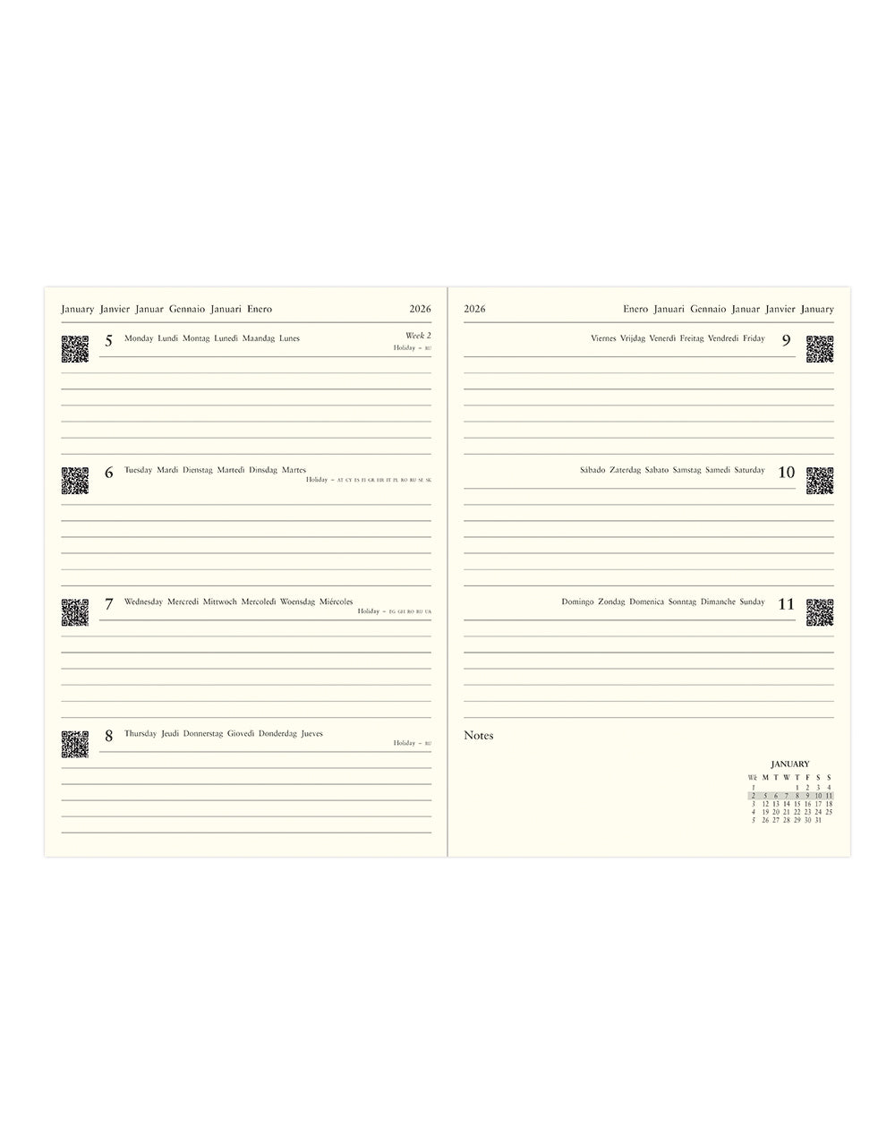 Lecassa A4 Week to View Diary 2026 - Multilanguage