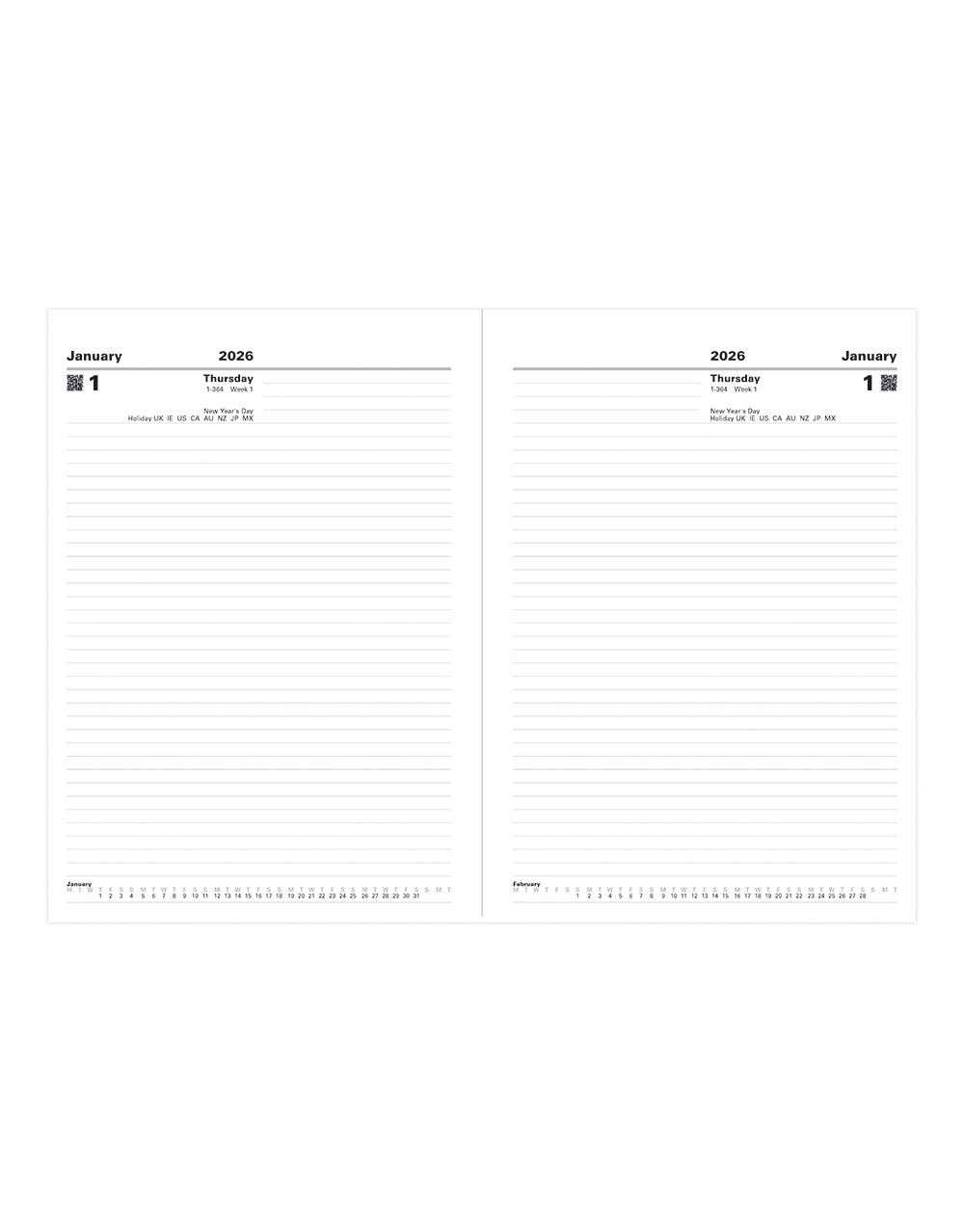 - day on two pages diary 2026 (01/01/26 - 01/01/27)
